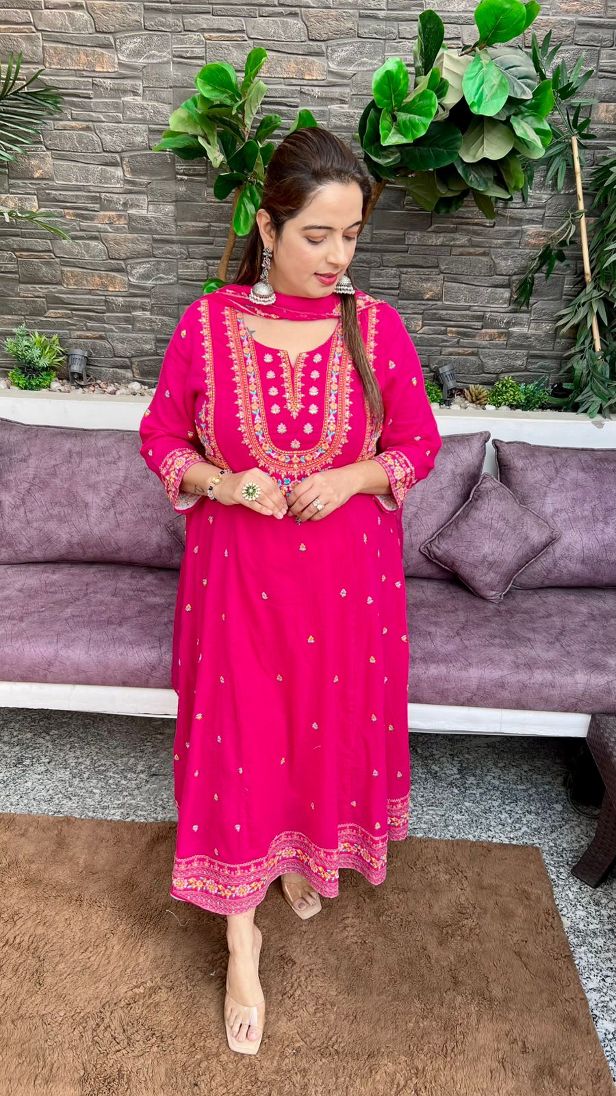 Elegant Anarkali made from Pure Crush Cotton Anarkali, designed with a soft cotton lining for added comfort. Detailed Hand Embroidery across the shirt gives it a timeless ethnic appeal, ideal for festive wear and graceful day functions.
