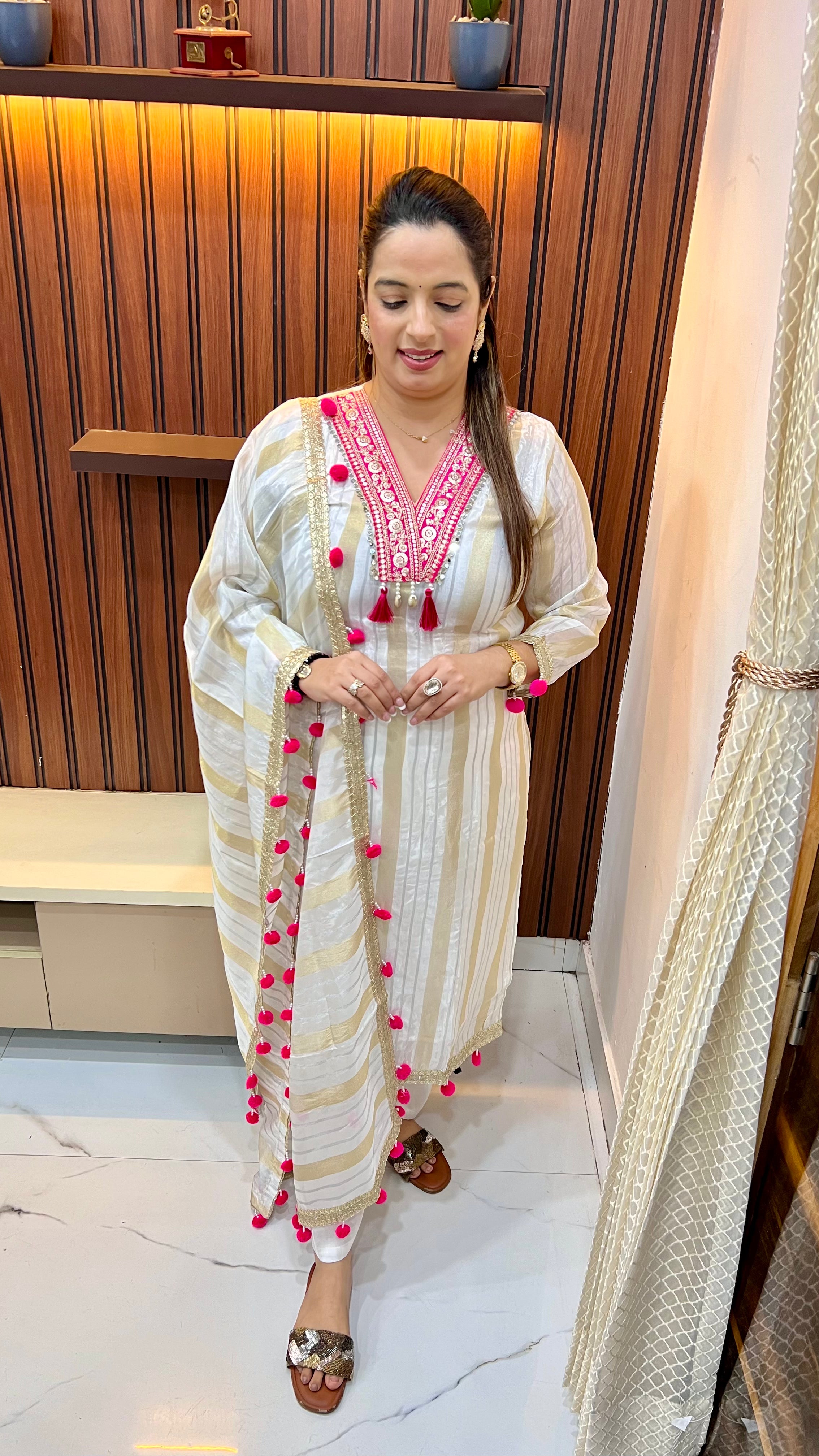 Royal Organza Shimmer Suit — Pompom Detailing with Shantoon Bottom
